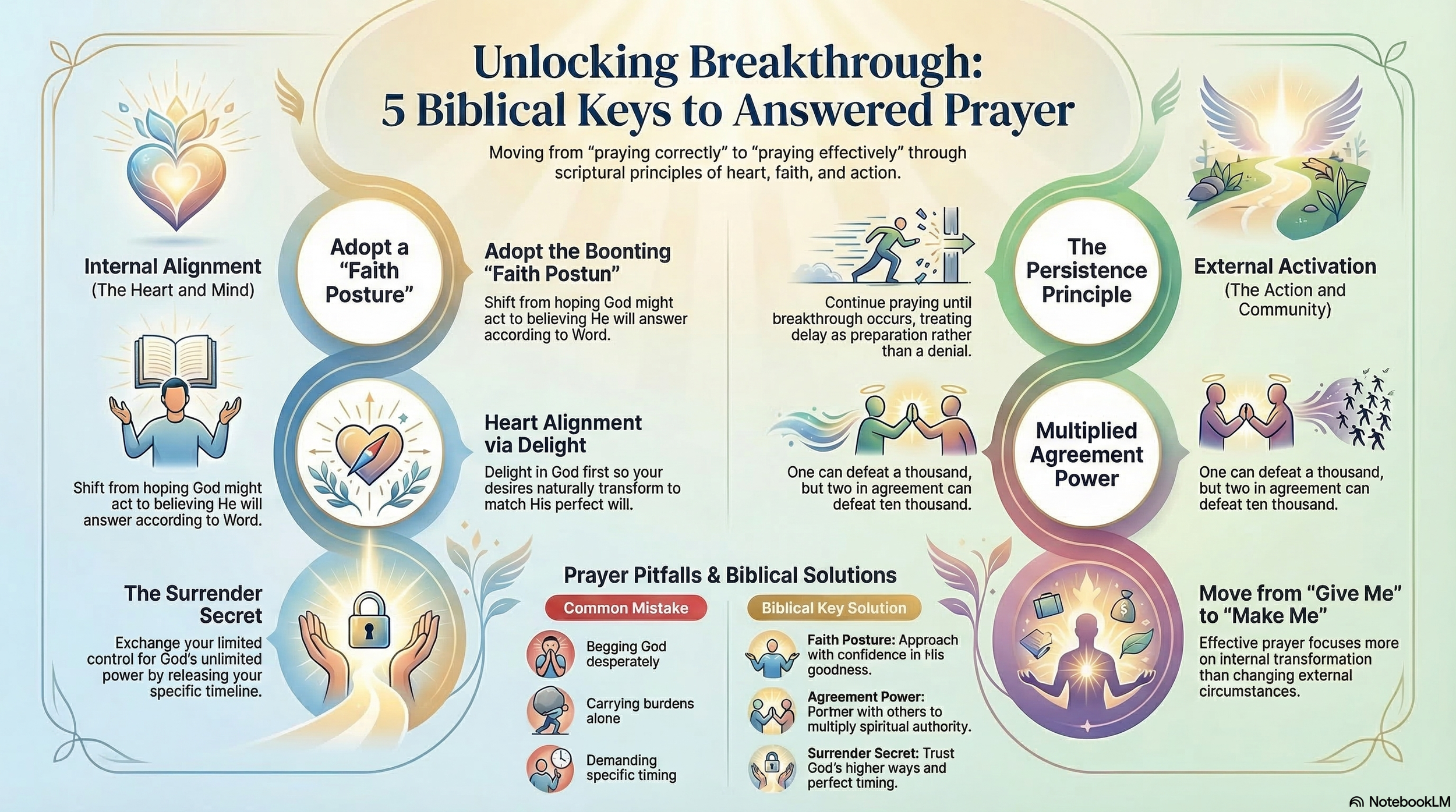 These five radical shifts—Faith Posture, Agreement, Persistence, Heart Alignment, and Surrender—are not meant to be used in isolation. They form a comprehensive framework for a transformed spiritual life. The breakthrough you seek is rarely found in a new technique, but in a deeper, more rigorous application of these eternal principles.